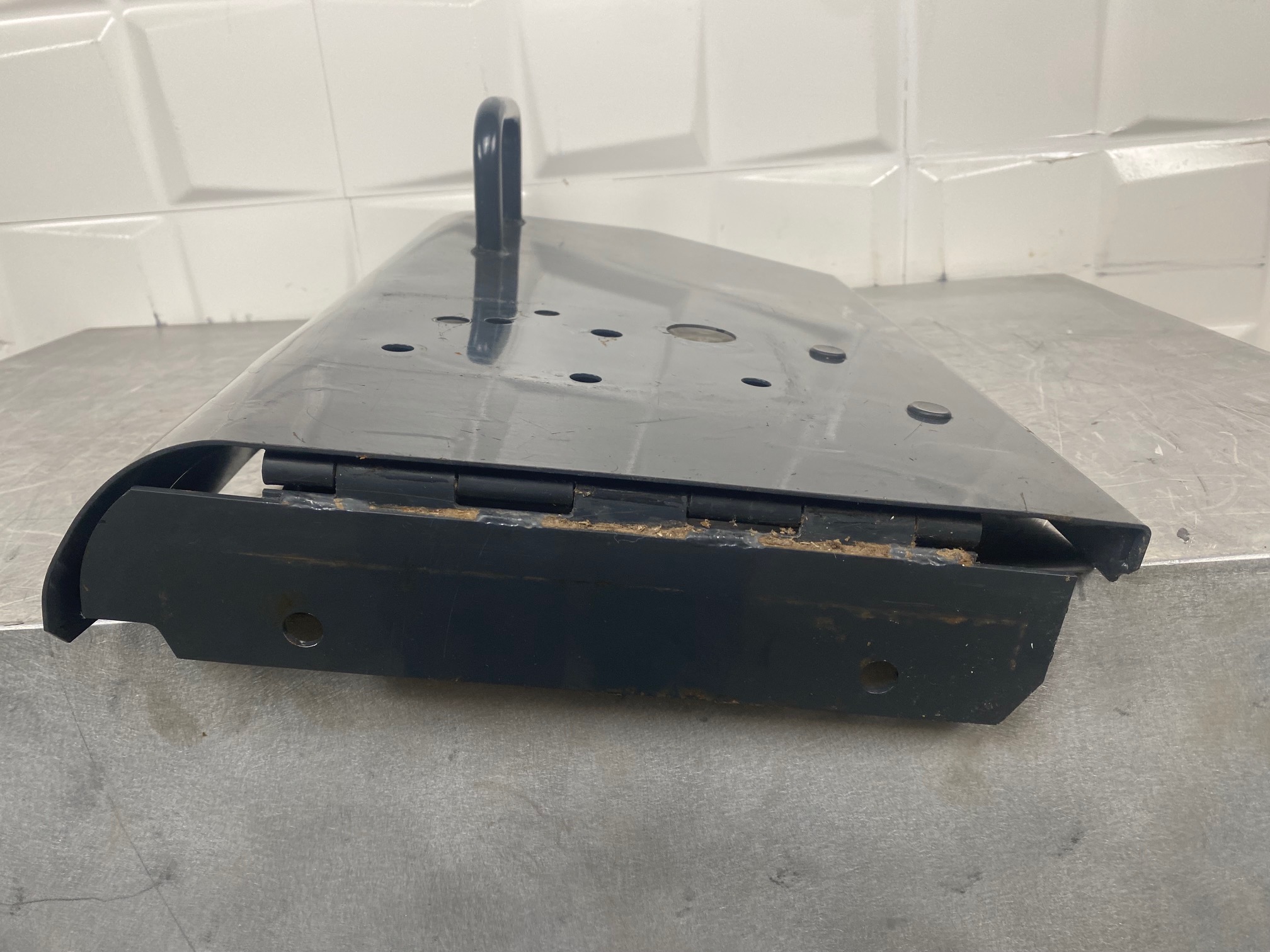 📍 Pieza PUERTA DEL CAJÓN DE BATERÍAS IZQUIERDO, KOMATSU, WA380-7, 423-06-58470 desmontada y verificada para garantizar su perfecto estado y funcionamiento.
